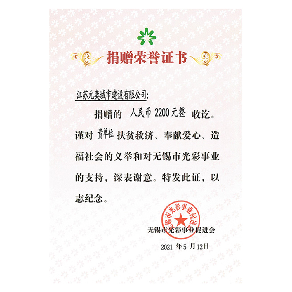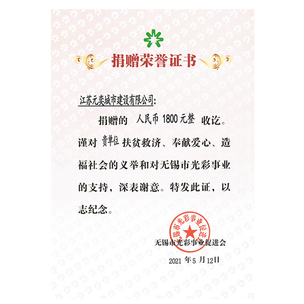 捐赠荣誉证书