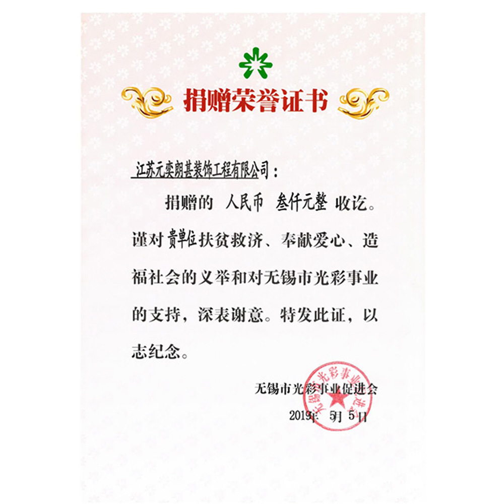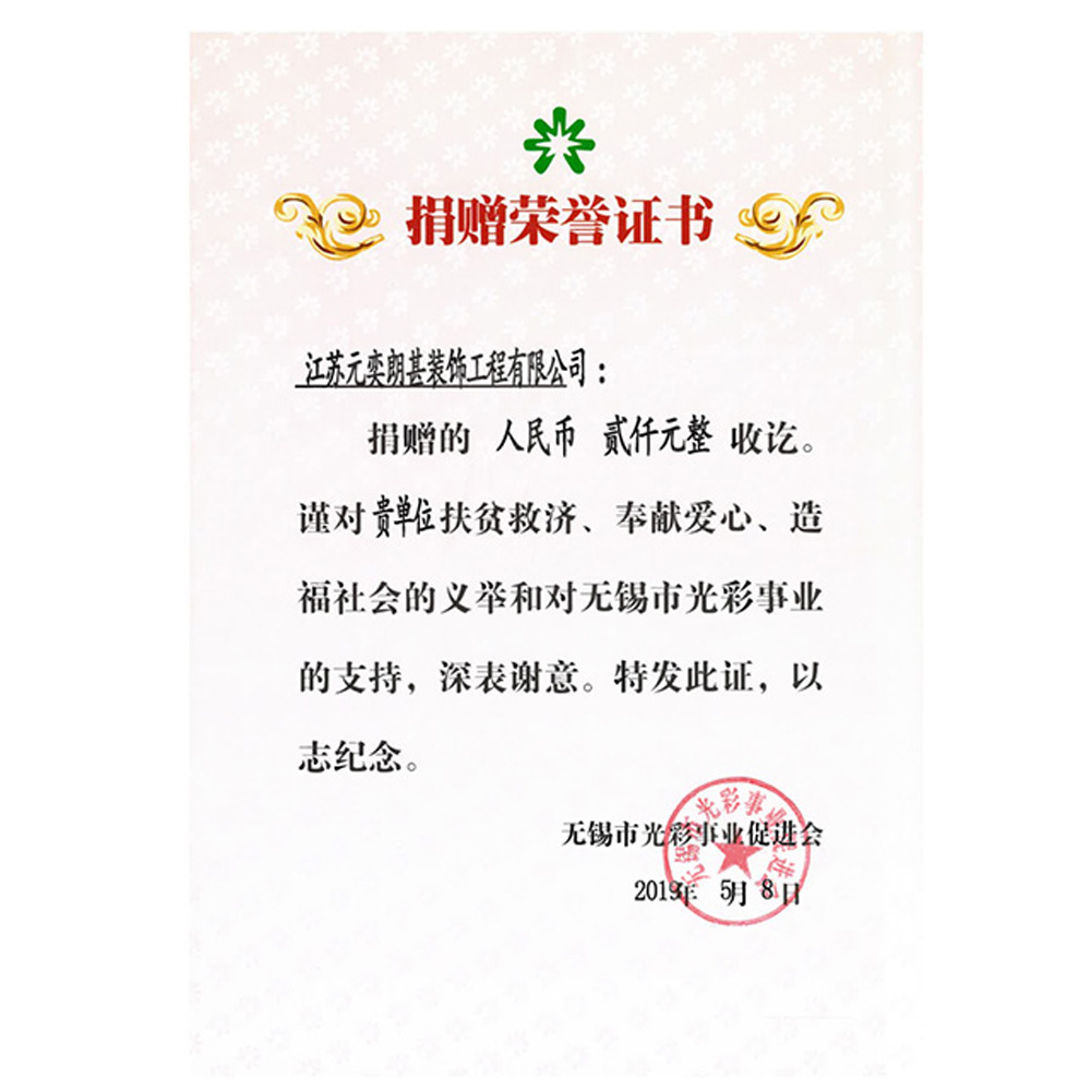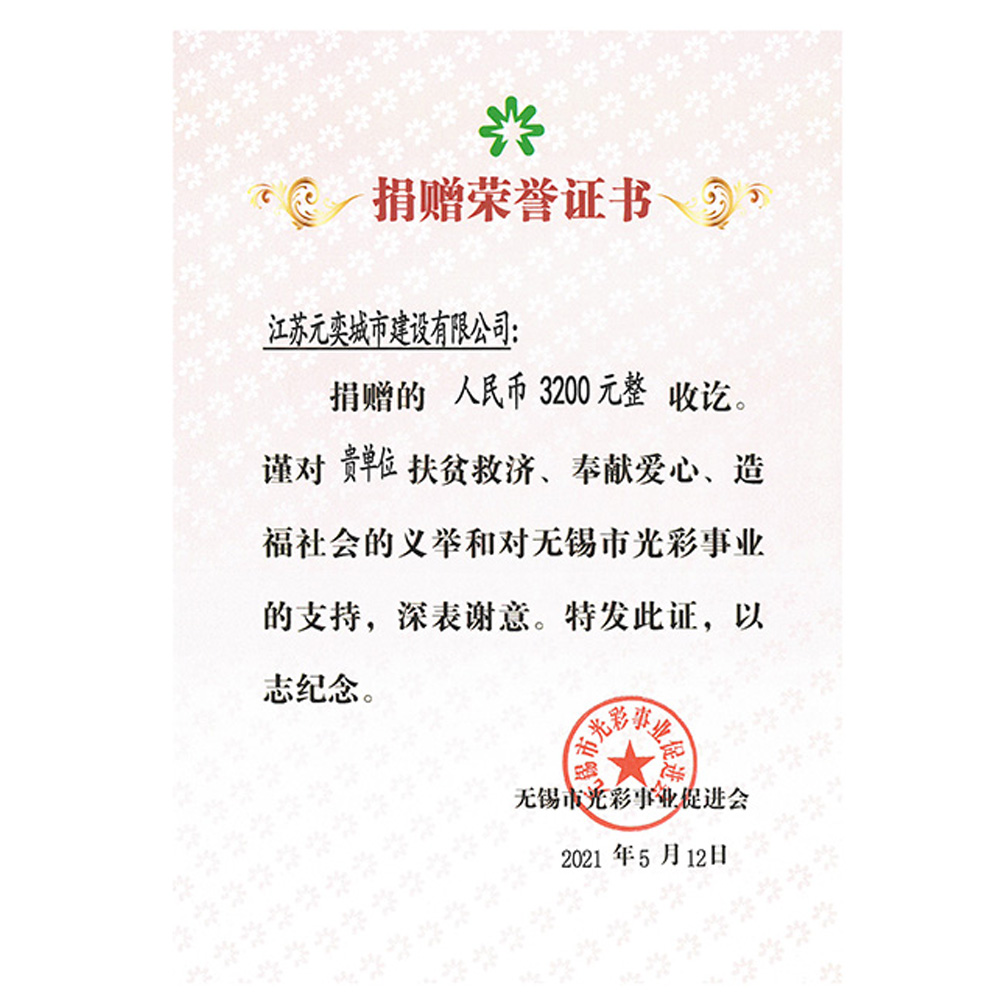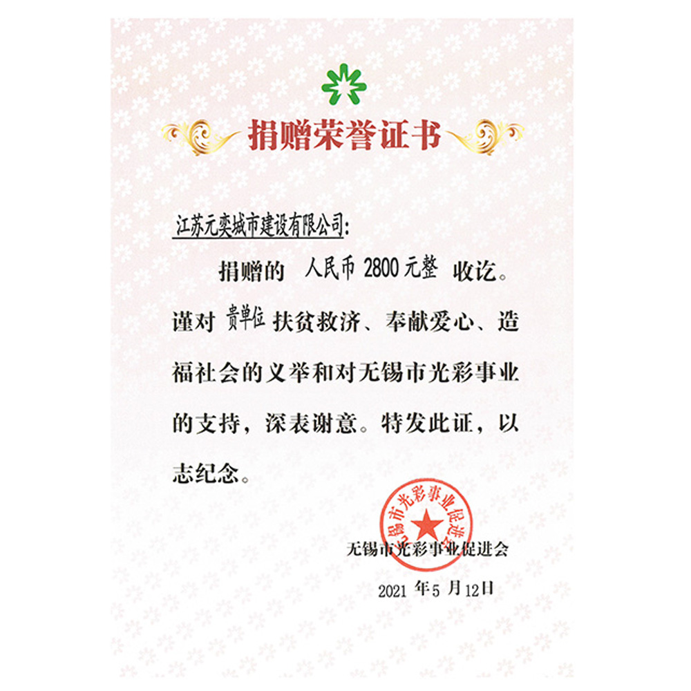 捐赠荣誉证书